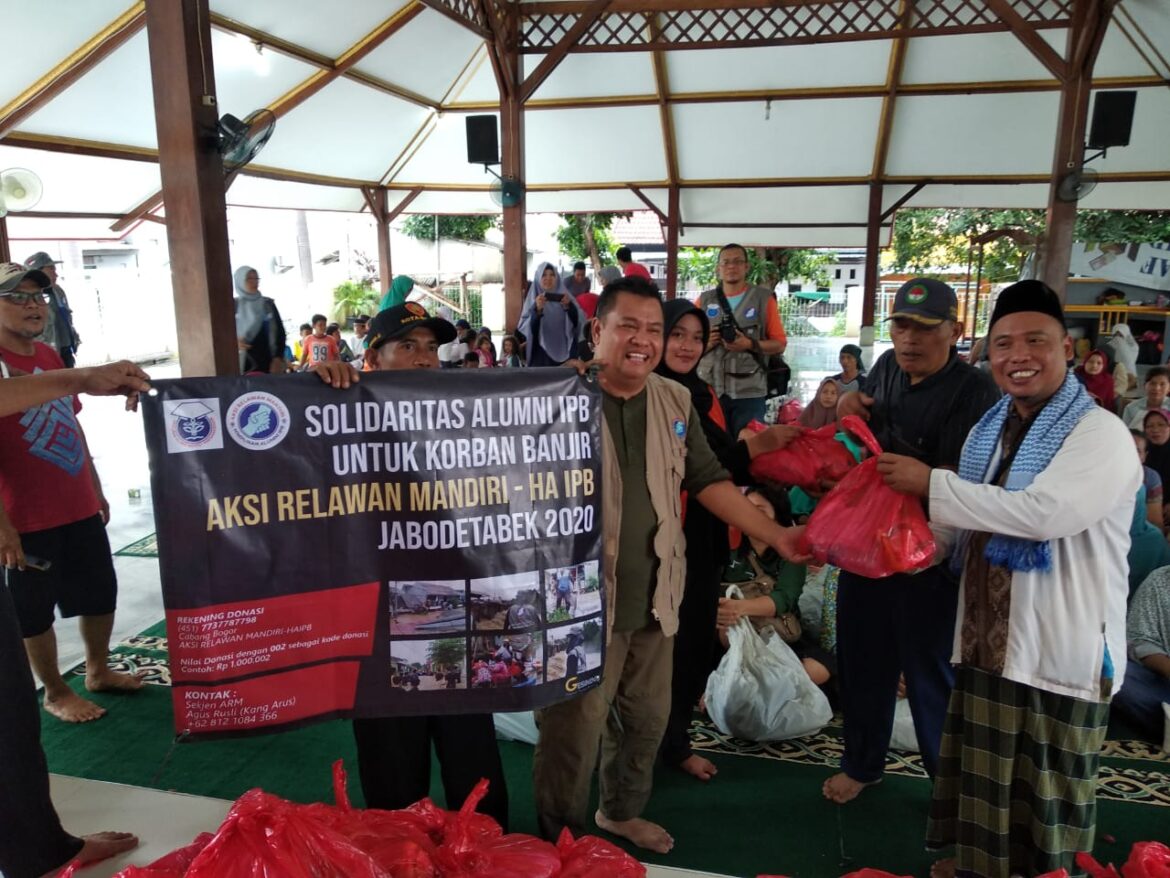 Himpunan Alumni IPB (HA-IPB), melalui badan otonomnya Aksi Relawan Mandiri atau ARM, menyalurkan 1.900 paket bantuan bagi korban banjir Jabodetabek, Minggu 5 Januari 2020. Bantuan tersebut diberangkatkan dari Gedung Alumni IPB Baranangsiang, Bogor bersama 30 relawan ARM yang tergabung dalam Tim Solidaritas Alumni IPB untuk Korban Banjir (SAIBAN).